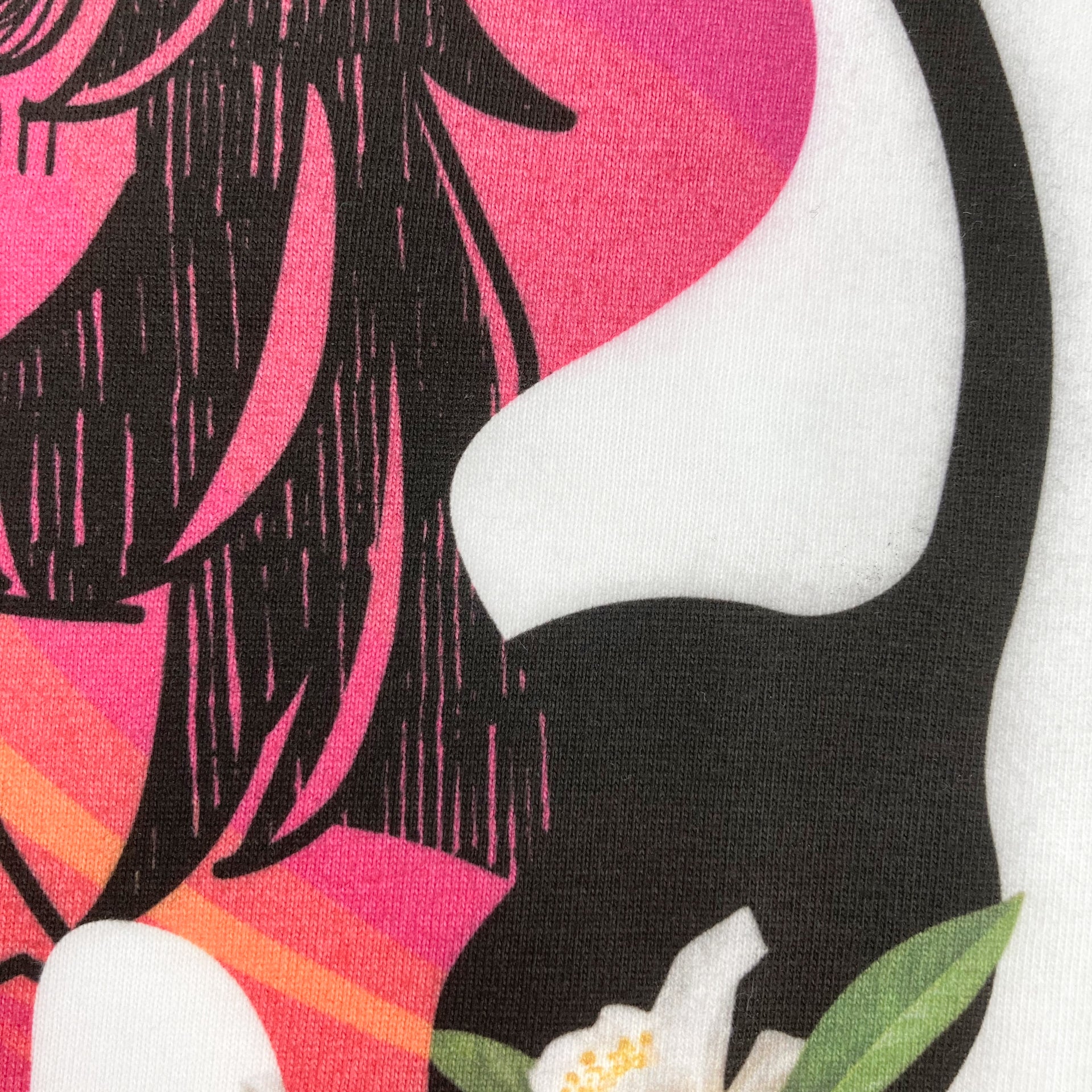 We made a T-shirt featuring Kiichan, a VTuber, and a plumeria flower.
