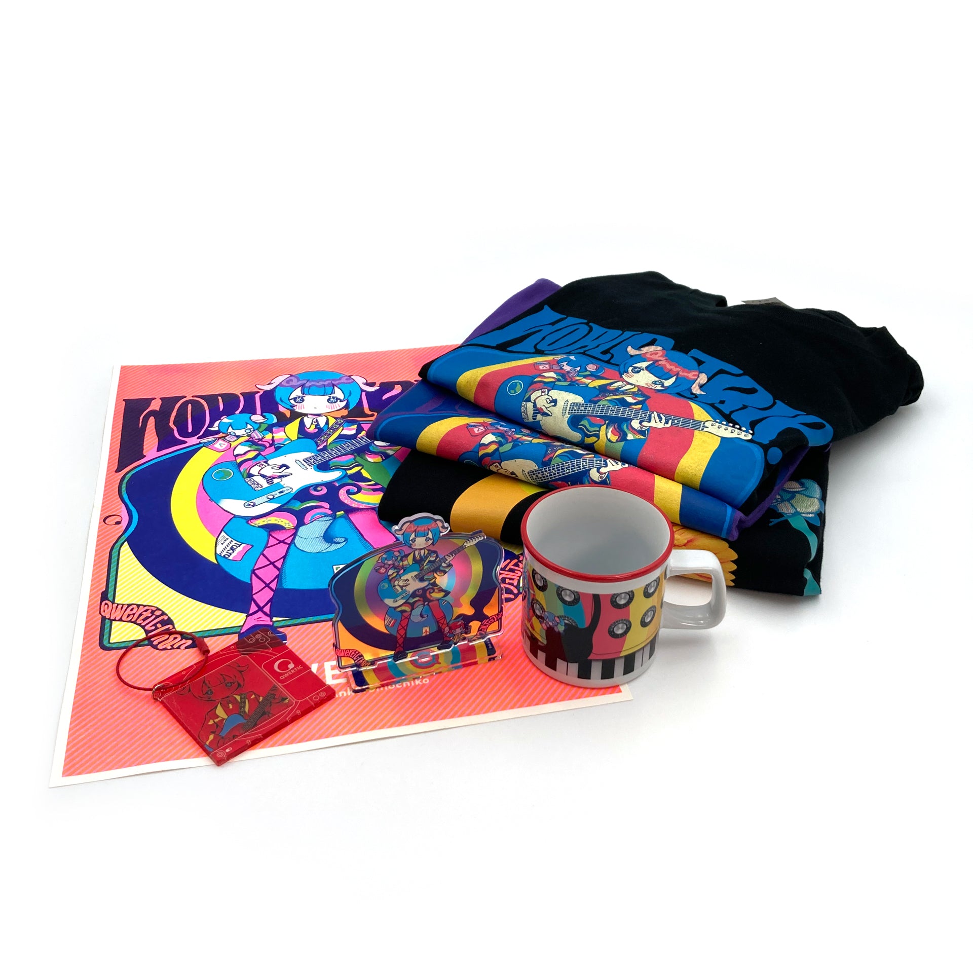 This ceramic mug features the adorable Qwertic-chan, illustrated by Ancoro Mochico-sensei, joyfully strumming her guitar in psychedelic fashion—straight out of 1960s hippie culture.